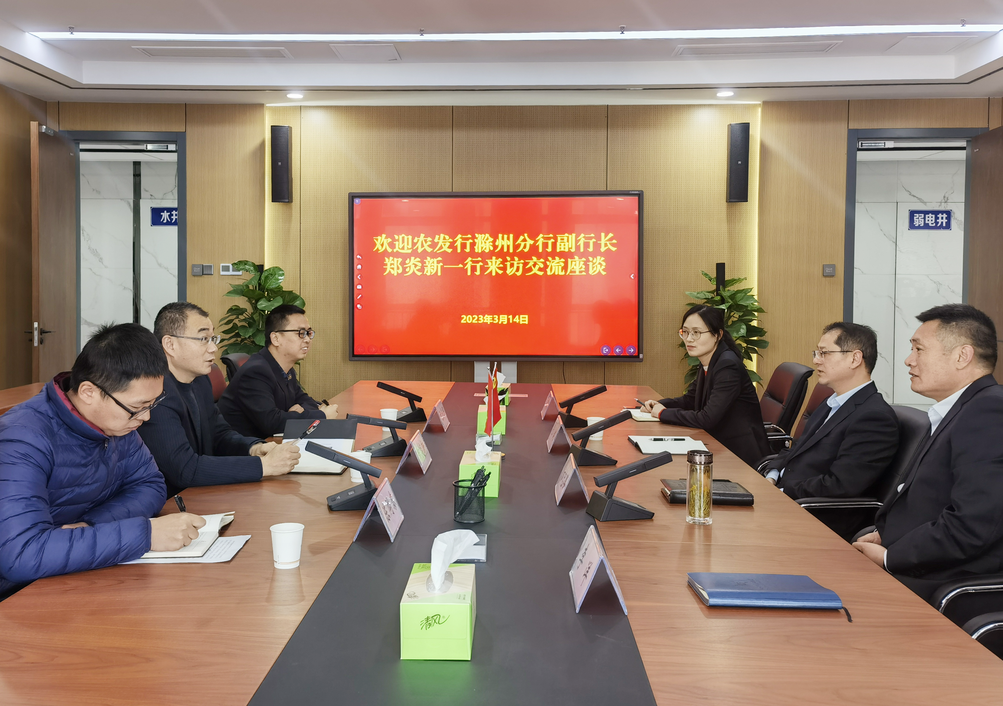 3月14日上午,農(nóng)發(fā)行滁州分行副行長鄭炎新一行到市擔(dān)保集團(tuán)開展業(yè)務(wù)交流,市擔(dān)保集團(tuán)副總經(jīng)理張健,總經(jīng)理助理方忠路及有關(guān)部室參加座談。