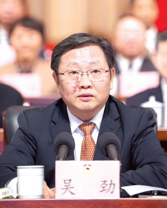 吳勁在市政協(xié)七屆五次會(huì)議閉幕會(huì)上講話。