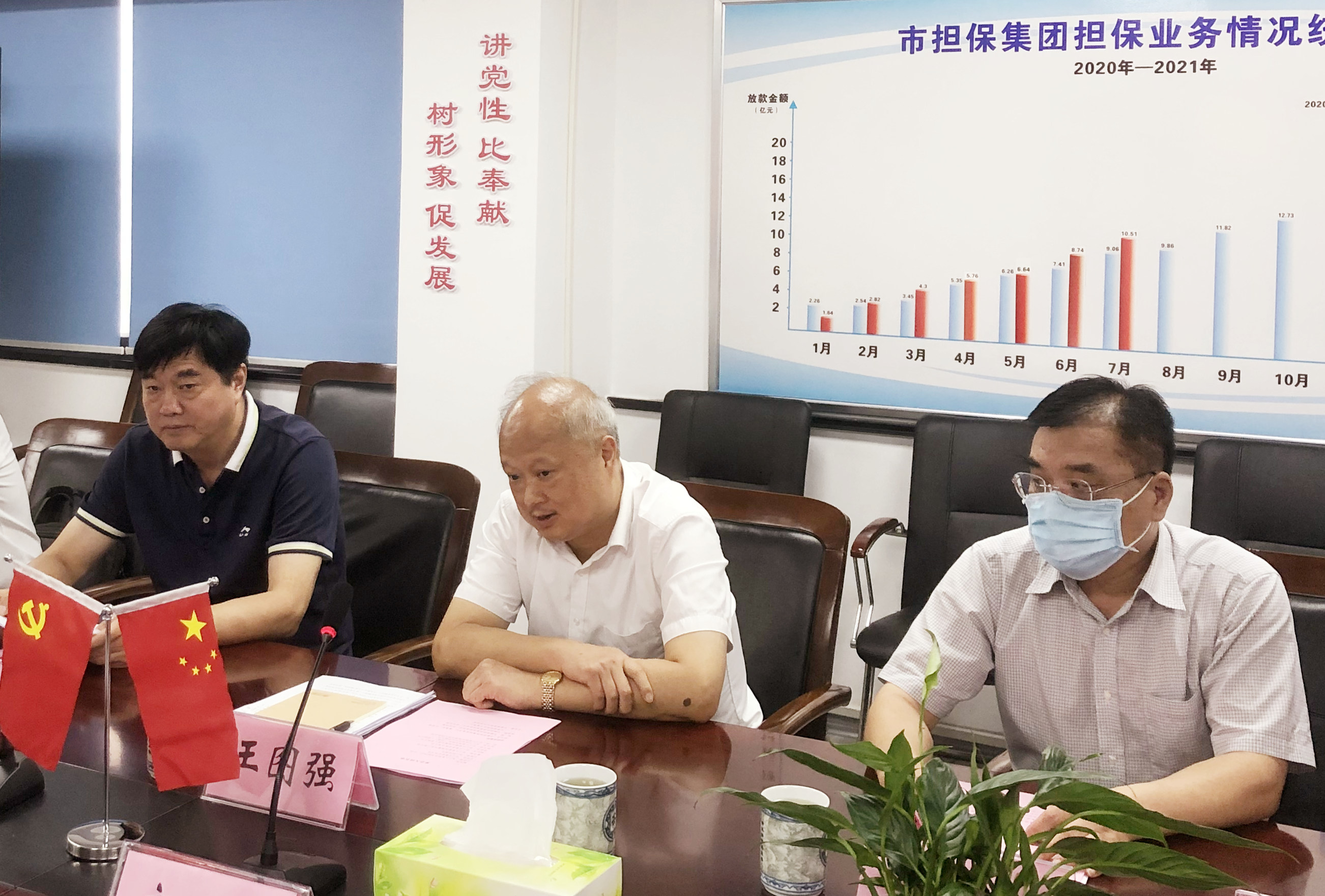 為深入調研我市金融機構助力企業(yè)發(fā)展情況,8月16日下午,市人大常委會黨組書記、主任王圖強一行蒞臨市擔保集團調研指導,集團黨委書記、董事長、總經理高文進及班子成員參加座談。