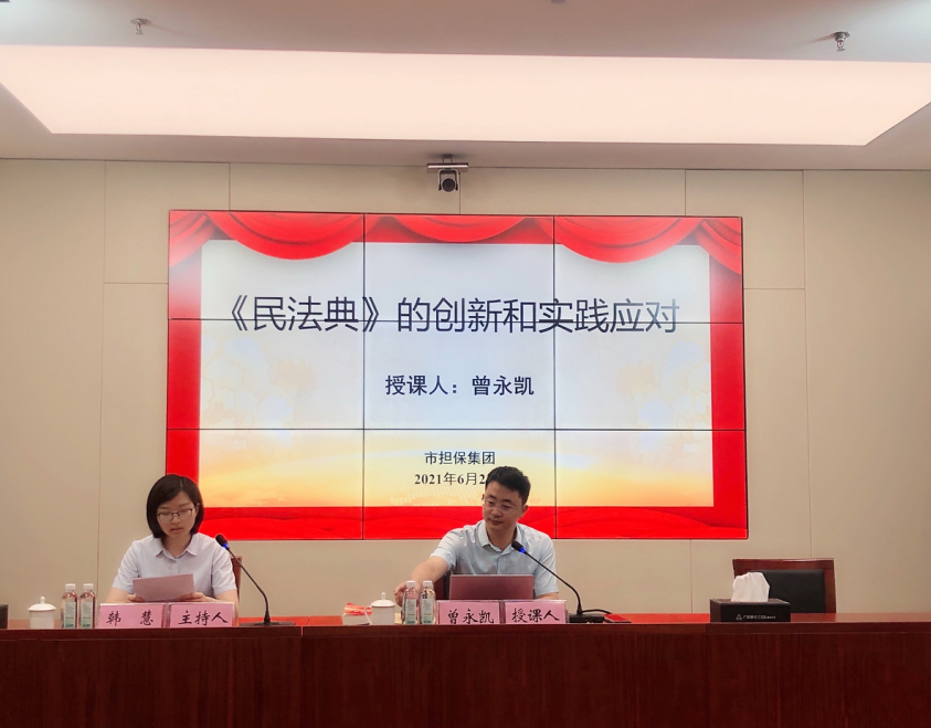 為慶祝建黨100周年,營(yíng)造濃厚法治氛圍,進(jìn)一步提高員工法律素養(yǎng),6月23日下午,市擔(dān)保集團(tuán)邀請(qǐng)到滁州電大法學(xué)副教授、市理論宣講專家?guī)鞂<?、市“青年講師團(tuán)”講師曾永凱,為集團(tuán)全體干部職工帶來了一場(chǎng)精彩的《民法典》的創(chuàng)新和實(shí)踐應(yīng)對(duì)專題培訓(xùn)會(huì)。