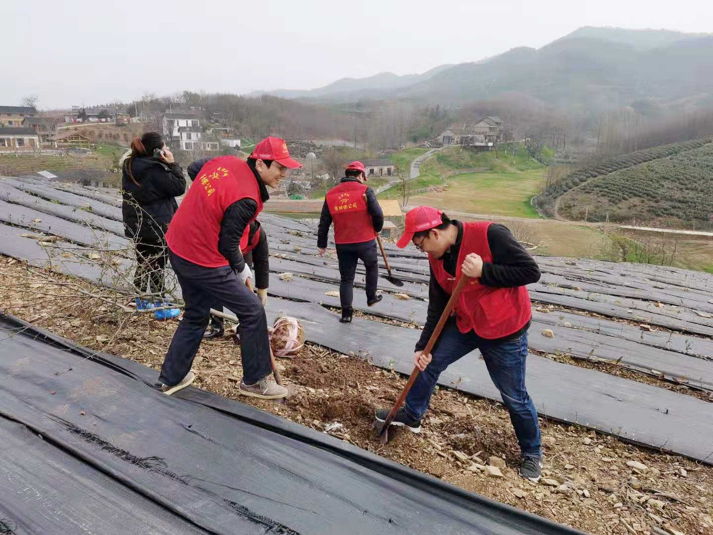 3月12日早晨,志愿者們帶上工具,身著紅馬甲開赴皖東茶鄉(xiāng)施集鄉(xiāng)井楠村。一到現(xiàn)場,志愿者們立即行動起來,在技術(shù)人員的指導(dǎo)下,根據(jù)地上已做好的標記,有的挖洞開溝,有的搬運花木,有的扶苗培土,各項工作按程序有條不紊開展起來。由于前一天剛下過雨,山上還很泥濘,志愿者們不怕臟不怕累,全身心投入到綠化美化的志愿服務(wù)中,那身亮麗的紅馬甲在茶園里顯得格外靚眼。經(jīng)過一天的辛勤勞動,一棵棵紅梅、綠梅、臘梅,一棵棵樸樹、玉蘭,被間隔種植在新開發(fā)的茶山上,來年的茶山一定更加美麗。