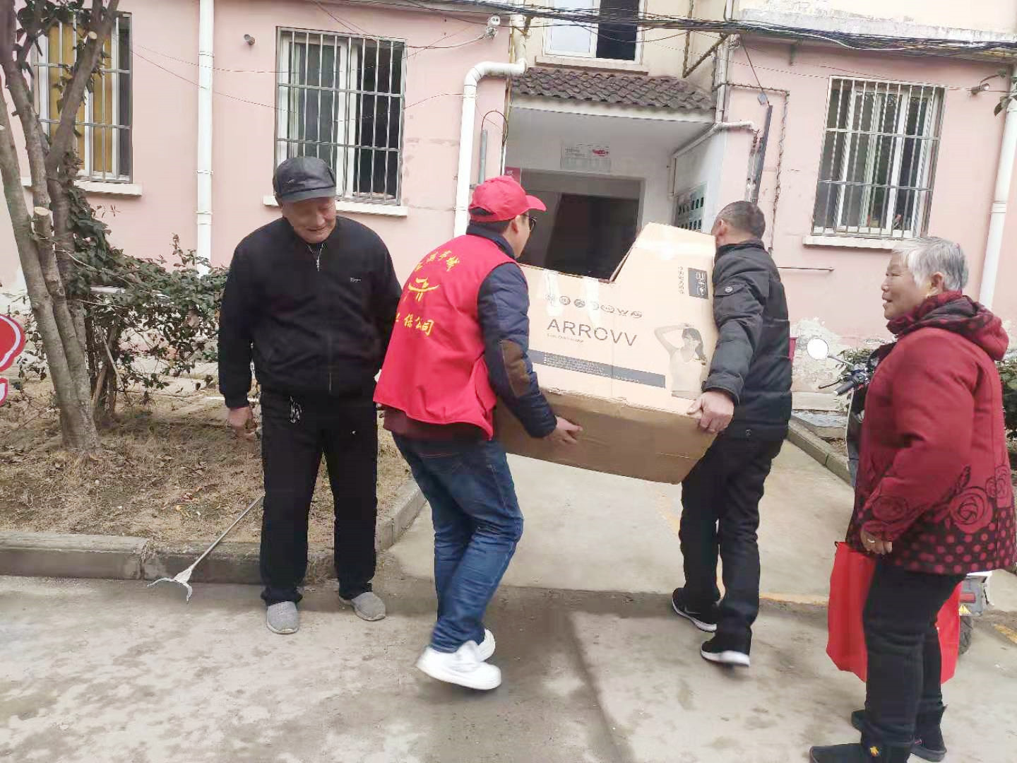 志愿者幫助老人搬抬重物