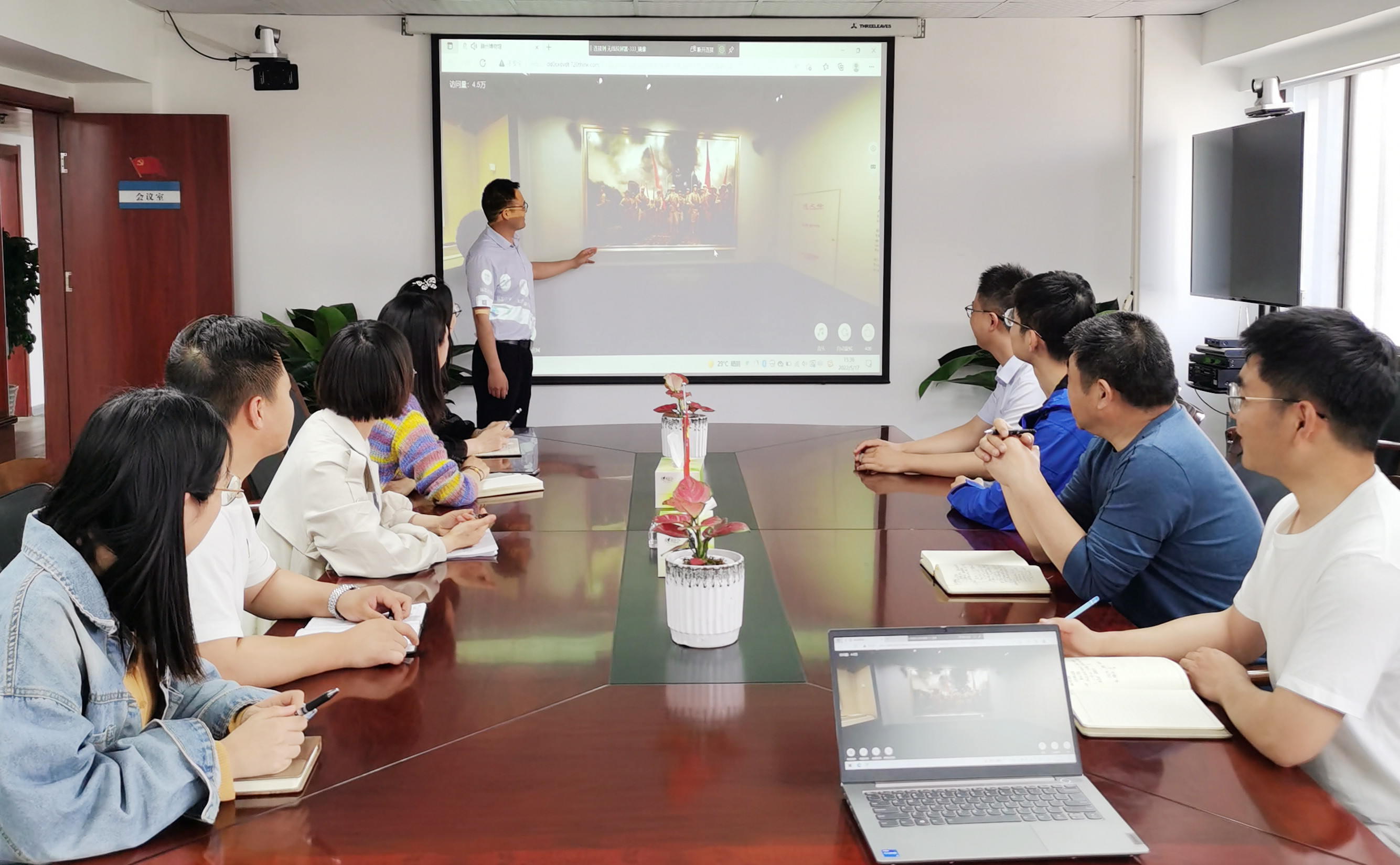 黨小組組長化身“云導(dǎo)游”,為黨員干部展示了皖東青年學(xué)生響應(yīng)五四運動、皖東大地最早的黨組織、中共滁縣獨立支部的成立等相關(guān)歷史文物,講述了周家崗反“掃蕩”戰(zhàn)斗、半塔保衛(wèi)戰(zhàn)、滁州解放等紅色故事。